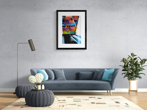 Les passes-partout sont un intermédiaire entre l'œuvre et le cadre, mais l'encadrement est aussi un intermédiaire entre l'œuvre et le mur. C'est pourquoi il peut être personnalisé et plus travaillé qu'un simple passe-partout. Voici un exemple de rendu entre un passe-partout classique blanc, blanc cassé ou noir et un passe-partout personnalisé :